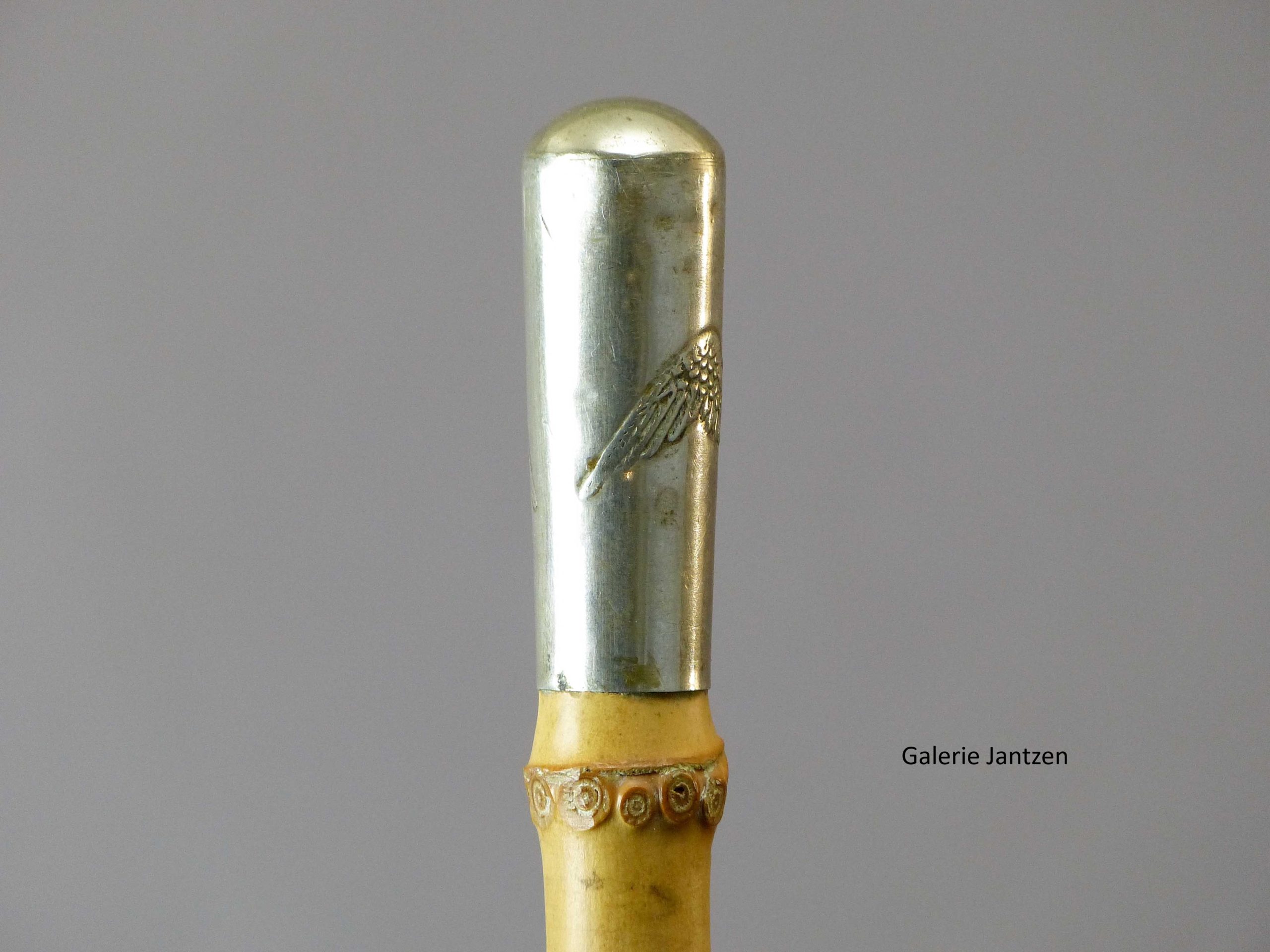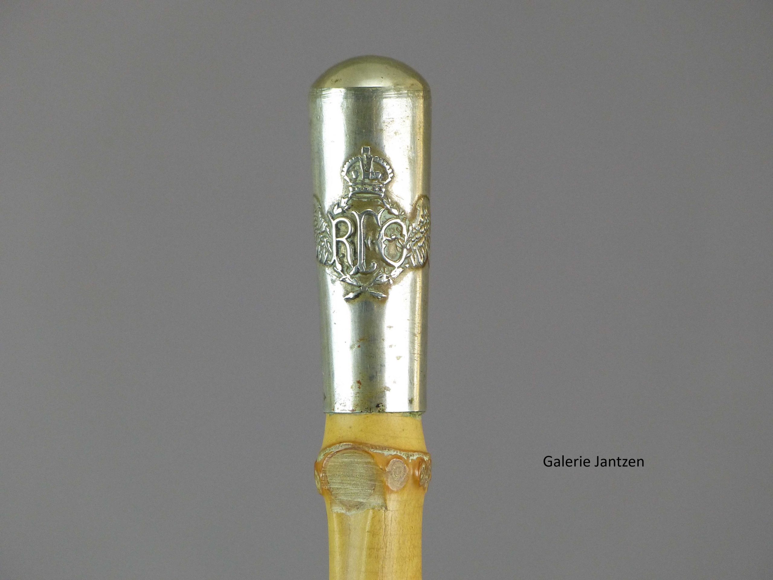 Bâton militaire de commandement Anglais également nommé « Swagger Stick » aux armes de la « Royal Flying Corporation » (RFC) qui était le corps aérien de la British Army durant la Première Guerre mondiale. La devise du Royal Flying Corps était « Per ardua ad astra » ( À travers l’adversité, jusqu’aux étoiles ).