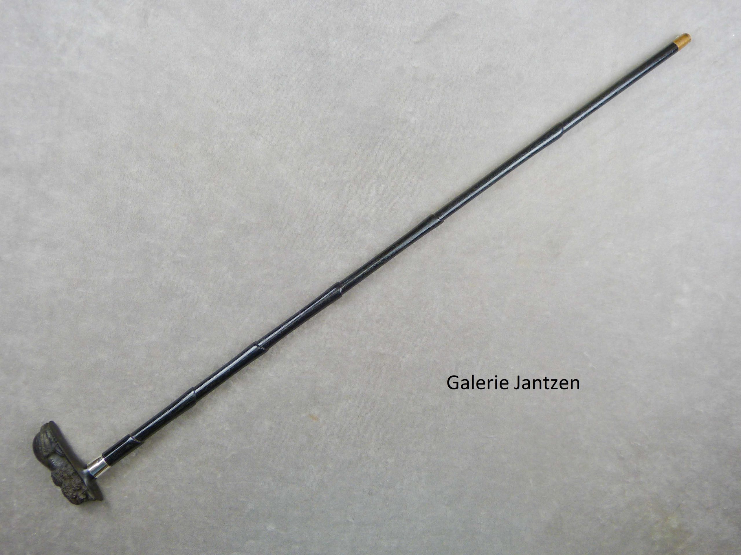 Sur un fût en Bambou peint en noir, monté sur une large bague en argent signée BRIGG, férule en métal.
